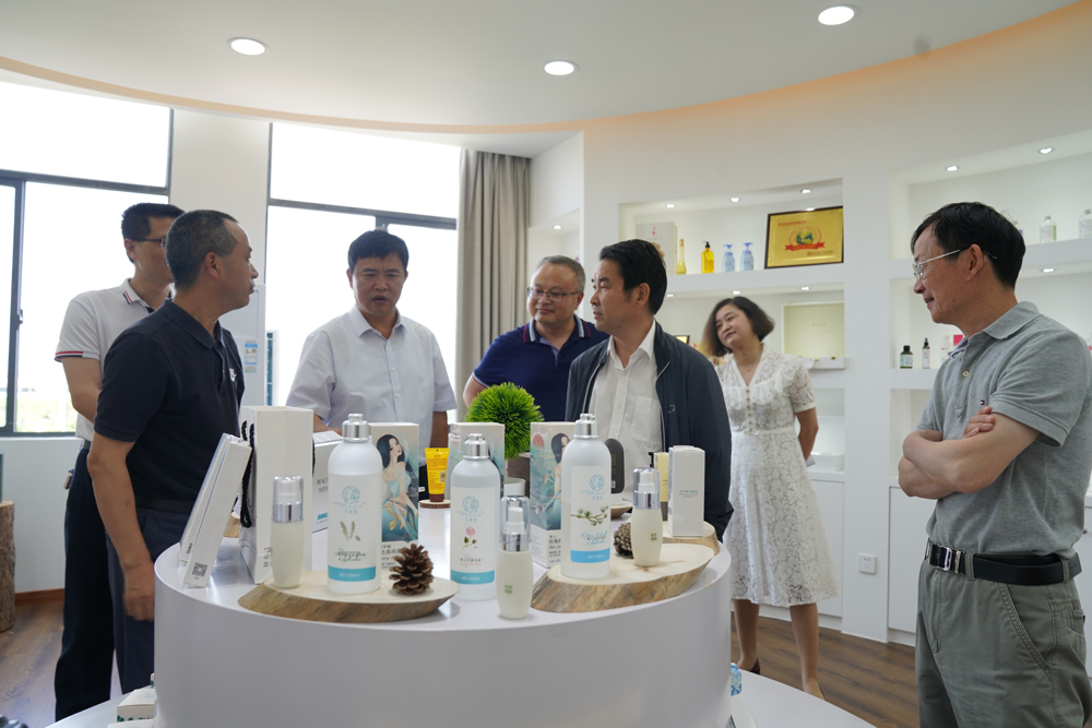 在成品展廳,張昌宏總經(jīng)理重點介紹了公司自主品牌“花寄語”新品開發(fā)情況,張正竹還親自體驗了部分產(chǎn)品。當(dāng)了解到“花寄語”產(chǎn)品以植物護膚為核心理念、以本地特色植物為原料的發(fā)展思路后,張正竹非常高興,對公司的快速發(fā)展和精準(zhǔn)定位給予充分肯定和高度贊揚,并就如何進一步開發(fā)本地特色作物在化妝品中的應(yīng)用提出了許多寶貴意見。